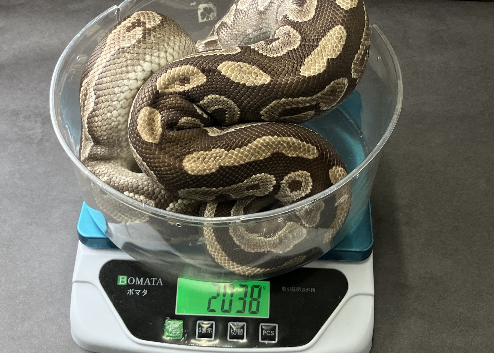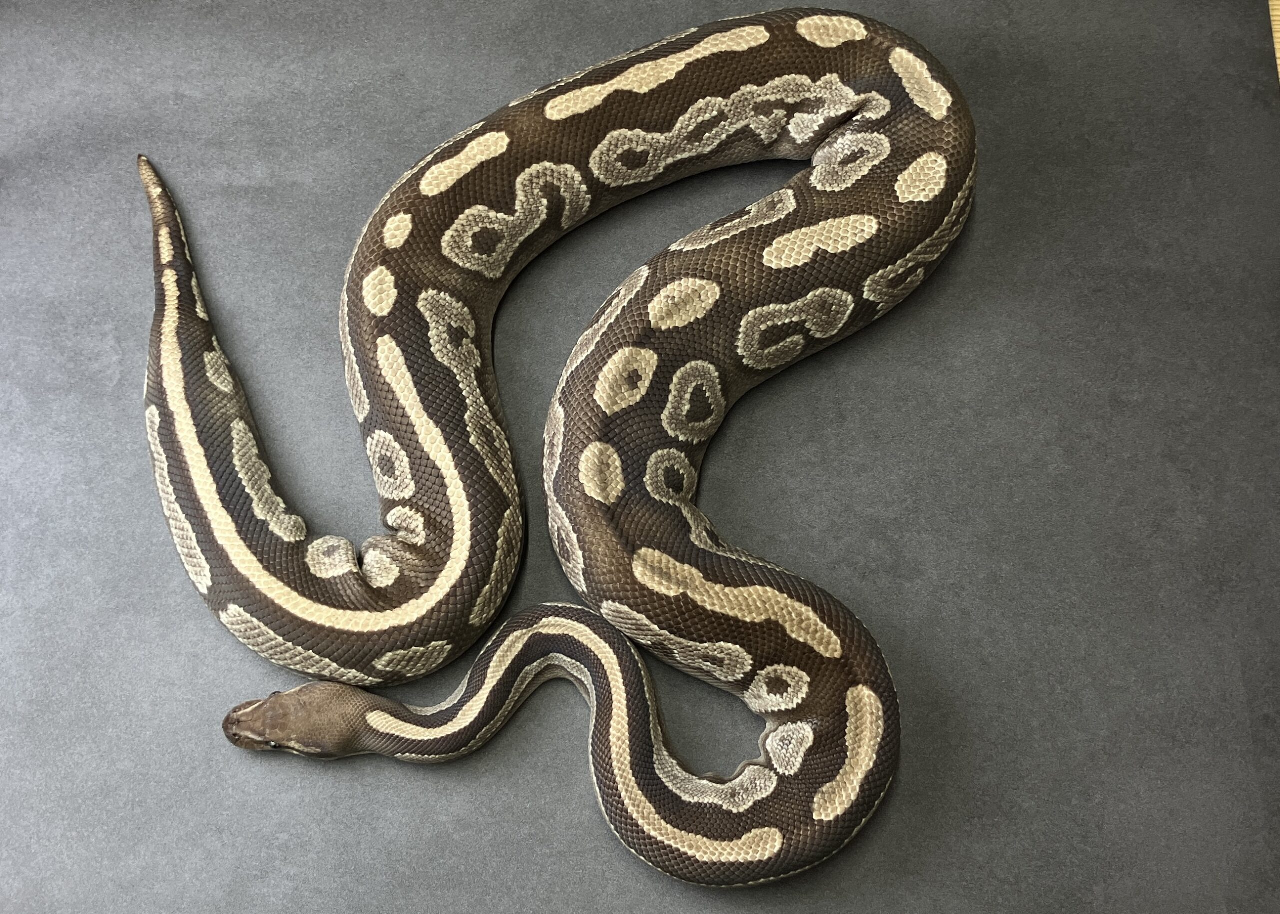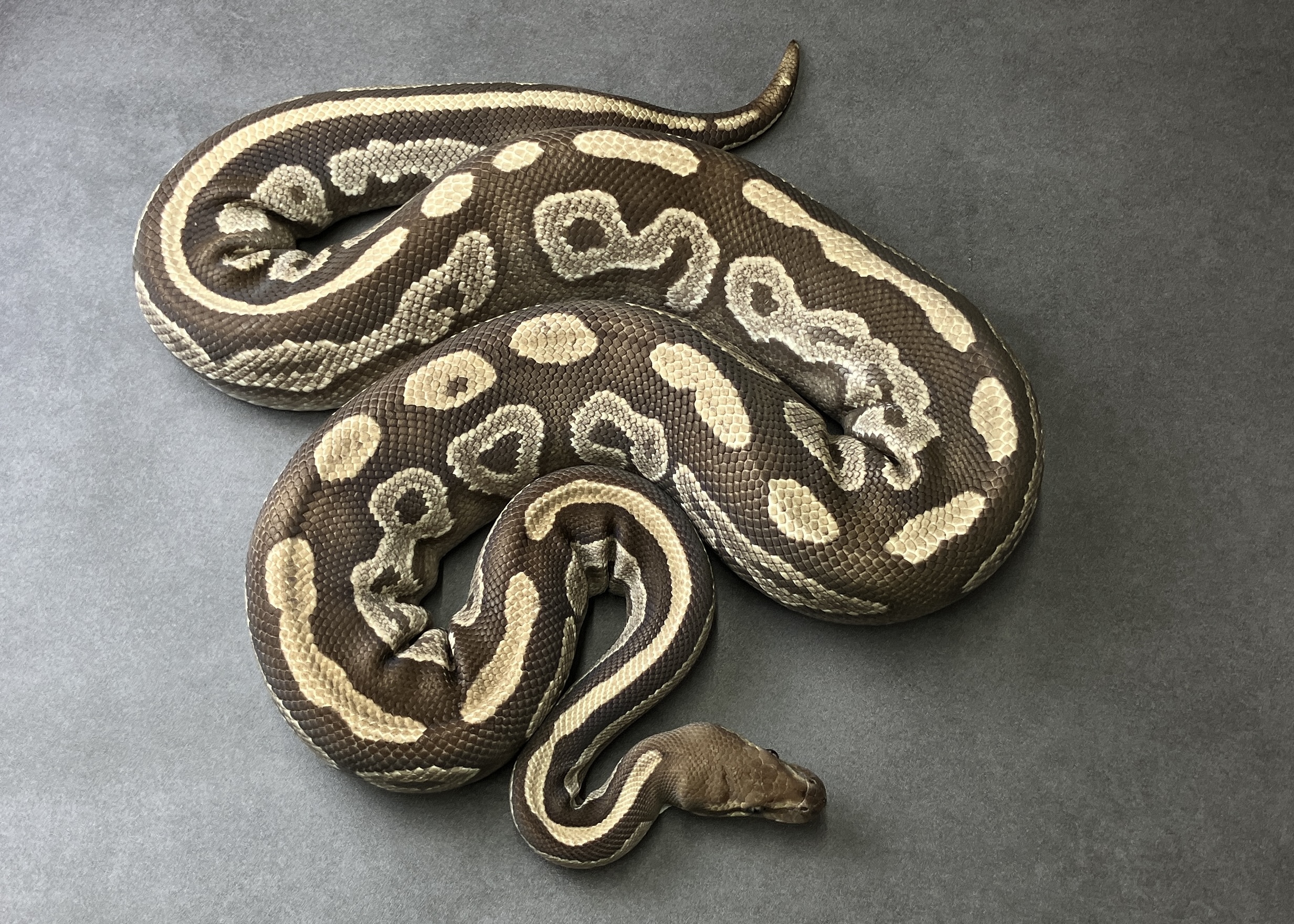 mahogany mojo het pied ボールパイソン 2026.01.07 産地:JPCB 性別:♀ 値段:¥88,000 餌:冷凍ラット お問い合わせ番号:BP030 モルフ名:mahogany mojo het pied 販売価格 88,000円(税込)