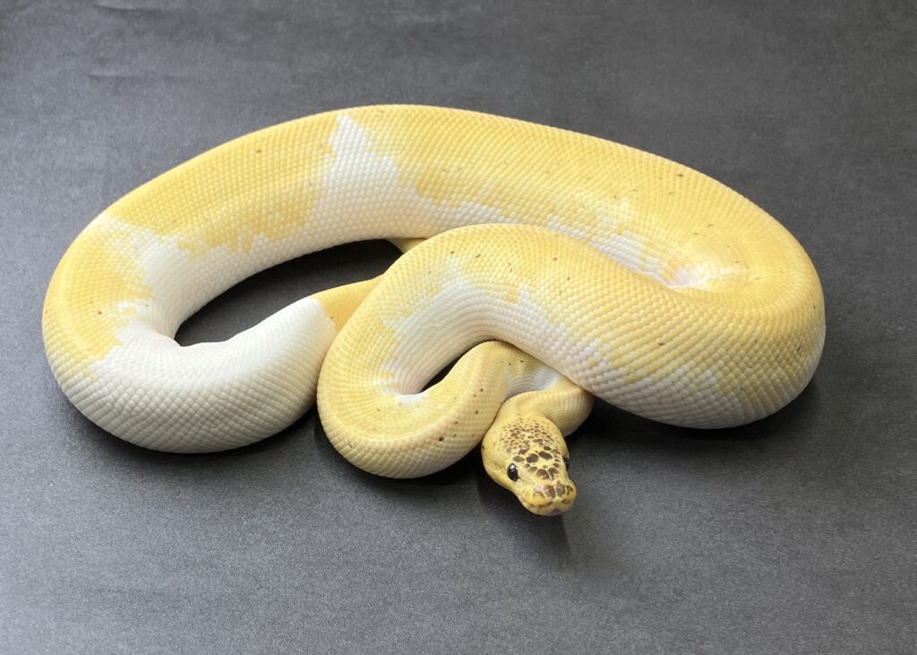 lemonblast freeway pied ボールパイソン 2026.01.15 産地:JPCB 性別:♂ 値段:¥55,000 餌:冷凍マウス お問い合わせ番号:BP062 モルフ名:lemonblast freeway pied 販売価格 55,000円(税込)