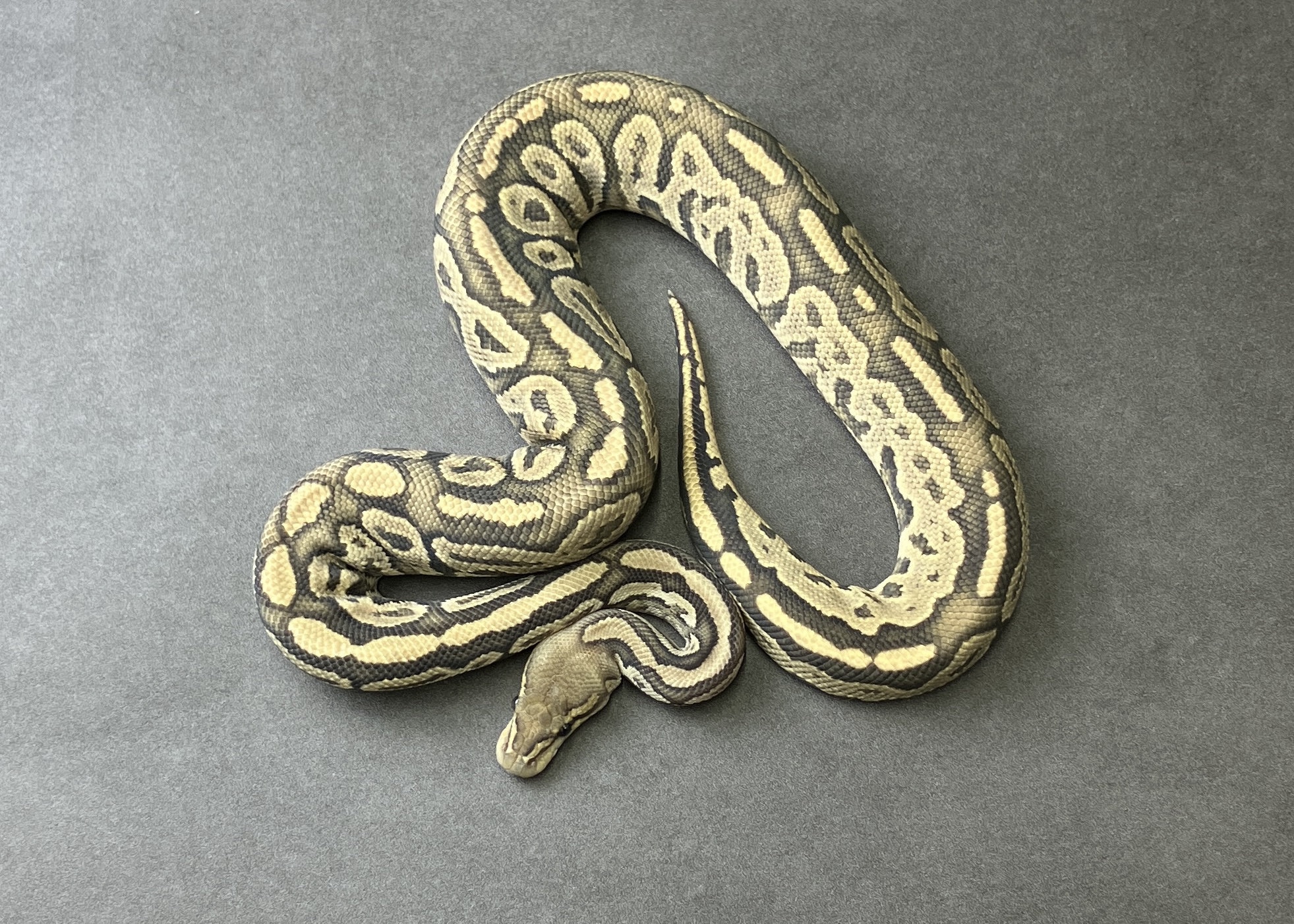 OG bongo ボールパイソン 2026.01.15 産地:CACB 性別:♂ 値段:¥22,000 餌:冷凍マウス お問い合わせ番号:BP070 モルフ名:OG bongo het pied 販売価格 22,000円(税込)